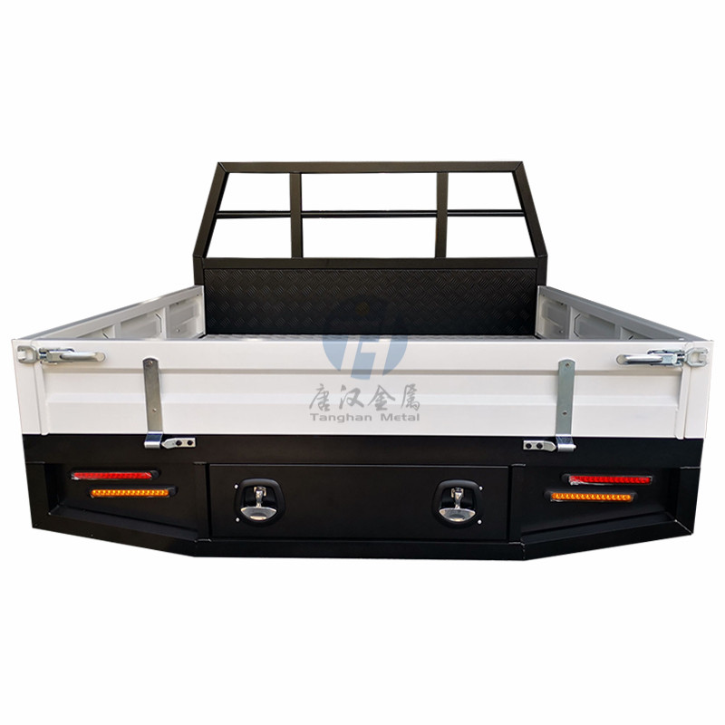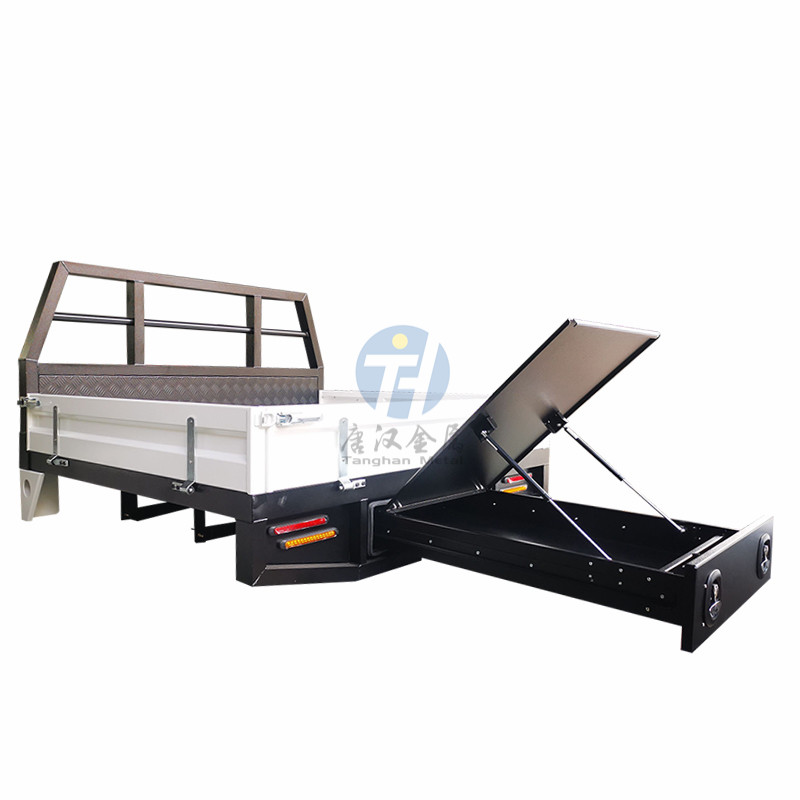 Ute车架框架、车头板和尾板采用3mm铝型材和铝板,TIG填充焊接,底盘采用低碳钢和镀锌钢,底座全焊接。外部采用多根加强筋加固,提高承载能力和安全性。后防倾杆可根据您的需求定制。每个 Ute 车架都可以提供标准的白色或木炭粉末涂层表面,以确保强度和耐用性。这些车架设计用于容纳所有轻型商用车,包括双室和单室 Ute。如果您需要不同尺寸,请联系我们,我们可以定制 ute 零件。