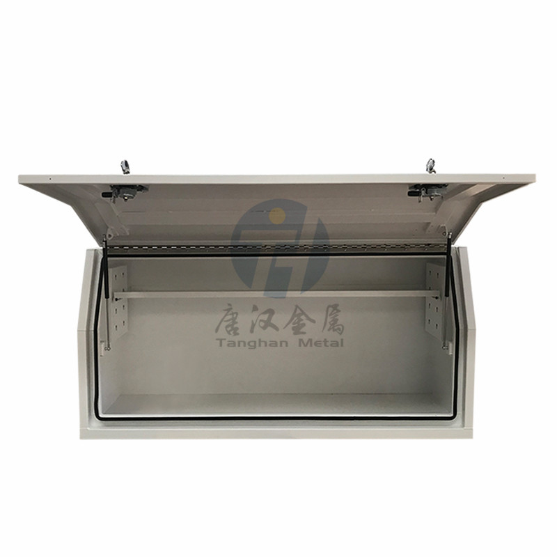 工具箱的盖子用钢琴铰链铰接,由气撑杆支撑作为门的结构,便于打开和关闭。锁采用澳大利亚流行的鲸鱼尾锁。工具箱门内侧由加强筋支撑,增加强度,不会变形;包括一个可调节的隔板,使存储更加灵活。该工具箱防水防尘,具有全焊接接缝和橡胶密封件,设计非常坚固且具有成本效益。