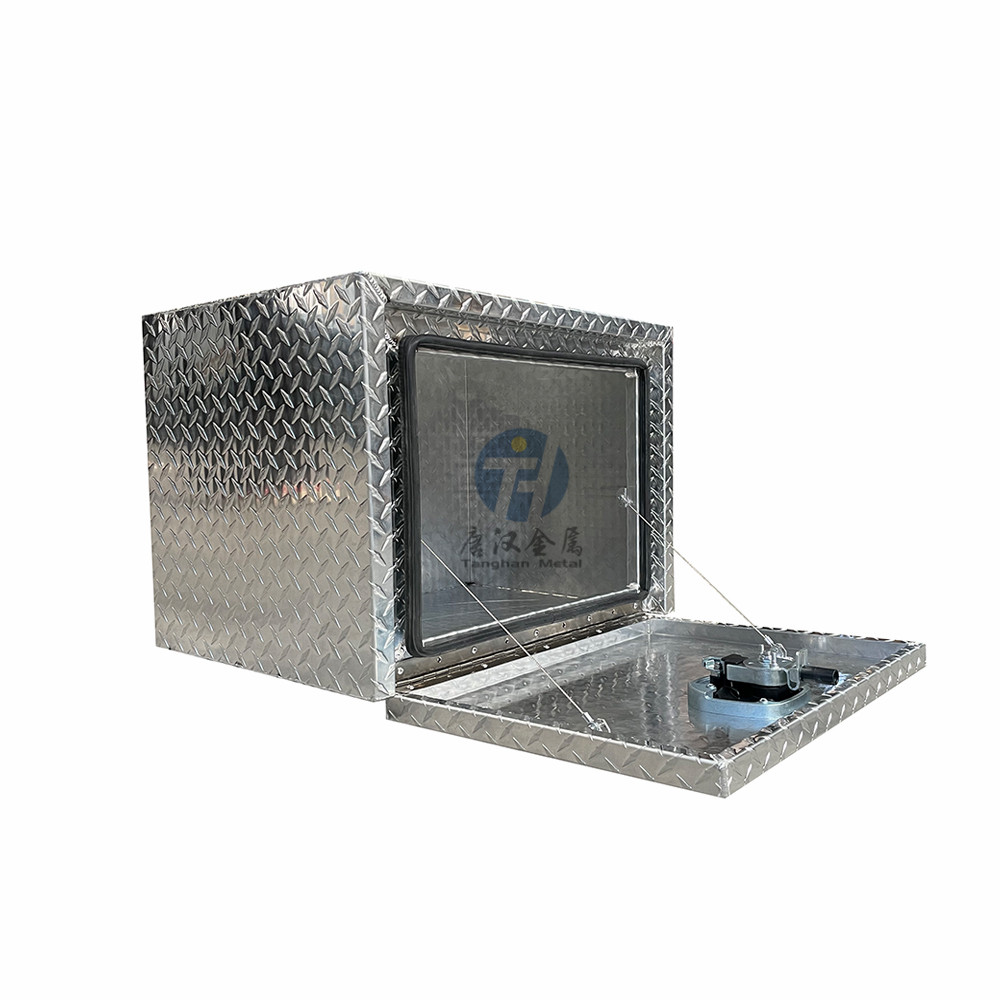 这是车身底部铝制金刚石花纹板工具箱。这旨在保护和固定您的设备以进行长途旅行。它由耐用的 2.5 毫米金刚石花纹板制成。钥匙可锁定设计可始终确保您的工具安全,鲸鱼尾手柄带镀铬板手柄锁定。有助于保护您的工具免受天气和盗窃。