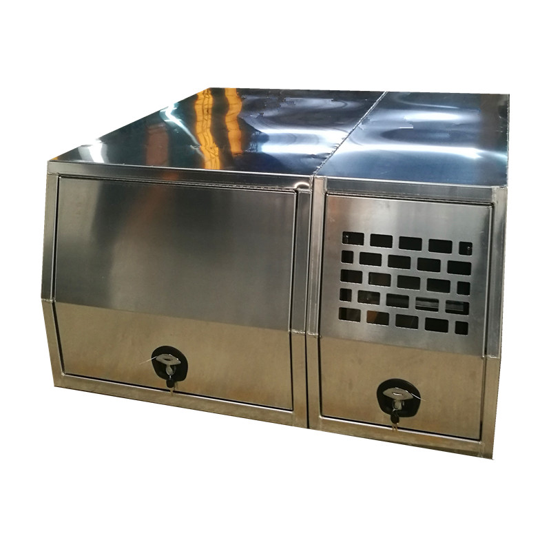 带狗箱的铝制 ute 大铝柜,采用优质材料和 3.0 毫米铝平板。它采用内部支撑设计,可在车顶上承受高达 300 公斤的重量和自升降能力,非常适合任何工作或冒险。带有通风孔的狗箱,让您的宠物在路上时安全可靠。